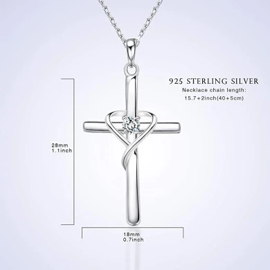 AmorAime 925 Sterling Silver Cross Necklace For Women Birthstone Necklace For Girls Birthstone Jewellery Gifts For Christmas,Birthday Or Anniversary