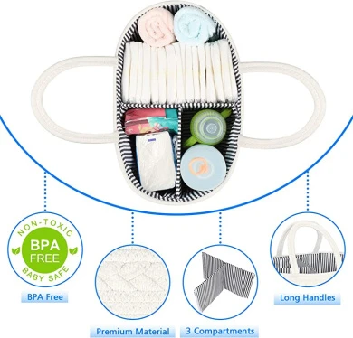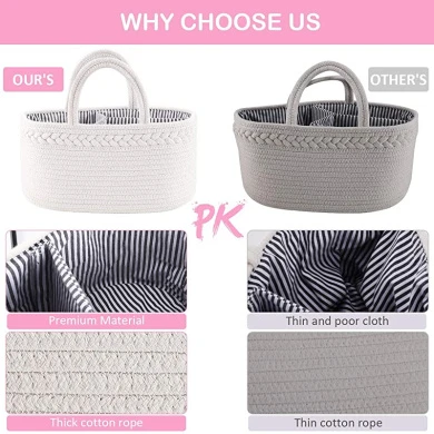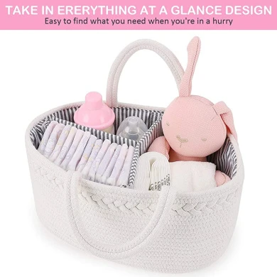 Highly recommend for all new parents! Baby must haves nappy caddy basket Our baby caddy organiser will help every mommy to get rid of messy baby nappy caddies, perfect to meet all your daily needs. As a new mommy, you will love the elegance and beauty it brings to you.Why Choose ABenkle Baby Nappy Caddy Organiser. – Use higher quality lining cloth and coarser rope than other nappy basket – 100% Durable canvas material – 100% Pure handmade craft – With removable inner dividers 3 spacious compartments – Lightweight, sturdy handles, portable to anywhere – White and pink colours Boho style perfect for baby girls – More durable with strong stitching technique Durable Our nappy bag caddy is made of durable and friendly material. Every baby nappy caddy has passed dozens of performance and durability tests and we promise only to use rope material which is mild to you.Whytable Size for Mommy Our rope nappy caddy holds baby items & keeps them handier. 14.2*8.5*18cm to meet your daily you.Whyce Divider Space divider compartments allows easy access for your baby’s essentials to be stored with convenience. Remove the dividers and you have a cute multipurpose basket. Fashion Nappy Basket for Nursery The chic, trendy nappy organiser boasts a cool, contemporary design that complements any decor. Subtle unisex colours work well for both boys & you.Whyely Application It’s ideal for nappies, and use this organiser basket to store books, crafts, art supplies, school-age toys & more. Looks attractive anywhere, home or you.Whyfect Baby Shower Basket The baby storage organiser will make ever mommy’s life be a little easier. Simply fill it with bibs, feeding bottle, wipes, nappies, blankets and other baby gifts.