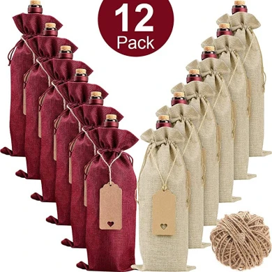 Burlap Wine Bags Wine Gift Bags, 12 Pcs Wine Bottle Bags With Drawstrings, Tags & Ropes, Reusable Wine Bottle Covers For Christmas, Wedding, Birthday, Travel, Holiday Party, Housewarming, Home Storage