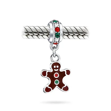 Christmas Gingerbread Man Cookie Holiday Dangle Charm Bead For Women Teen 925 Sterling Silver Fits European Bracelet