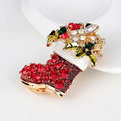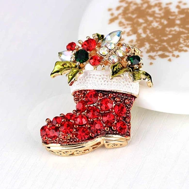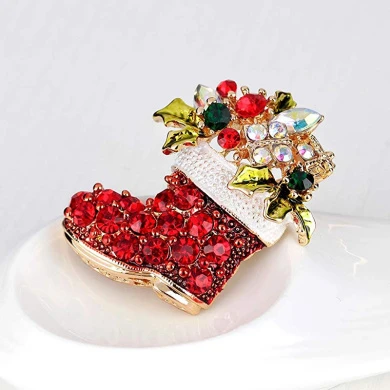 CUIGU Christmas Brooch Pins Ring Bell Rhinestone Jewellery Fashion Xmas Gift Decoration – Christmas Boots No.AL050-A