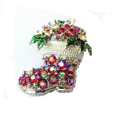 Gift For Xmas AB Red & Green Santa Sock Christmas Decoration Brooch Pin BR233