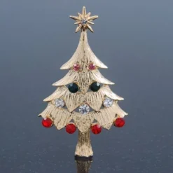 Red, Green, Clear, Pink Austrian Crystals Christmas Tree Brooch In Gold Plating – 60mm Length