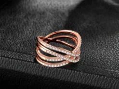 Qings Entwined Criss Cross Ring Silver Rose Gold Ring Inlaid Cubic Zircoina As Thanksgiving And Christmas Day Gift For Women
