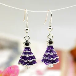 Purple Crystal Rhinestone Christmas Tree Drop Dangly Earrings In Gift Bag Womens Girls Silver Jewellery