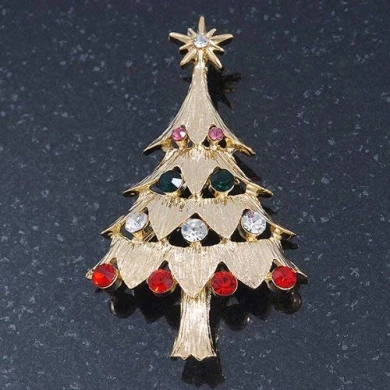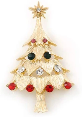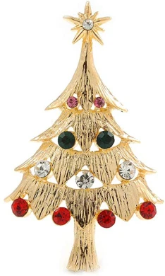 The start of the holiday season is finally upon us. No Christmas celebration is complete without a Christmas tree and our Christmas tree pin is a lovely example of holiday jewellery at its finest. This jewellery Christmas tree sparkles and shines, with deep green, red, clear and pink top grade Austrian crystals encrusted throughout the design of the tree. The gold plated crystal star on top represents the star of Bethlehem and shines brightly. The brooch crafted in gold plated metal and measures about 60mm L x 35mm W. Fastens securely with a metal pin clasp. Keep your holidays merry and bright when you wear our colourful Christmas brooch. Think about ordering one for a friend who shares your love of holiday jewellery when you place this order for yourself.